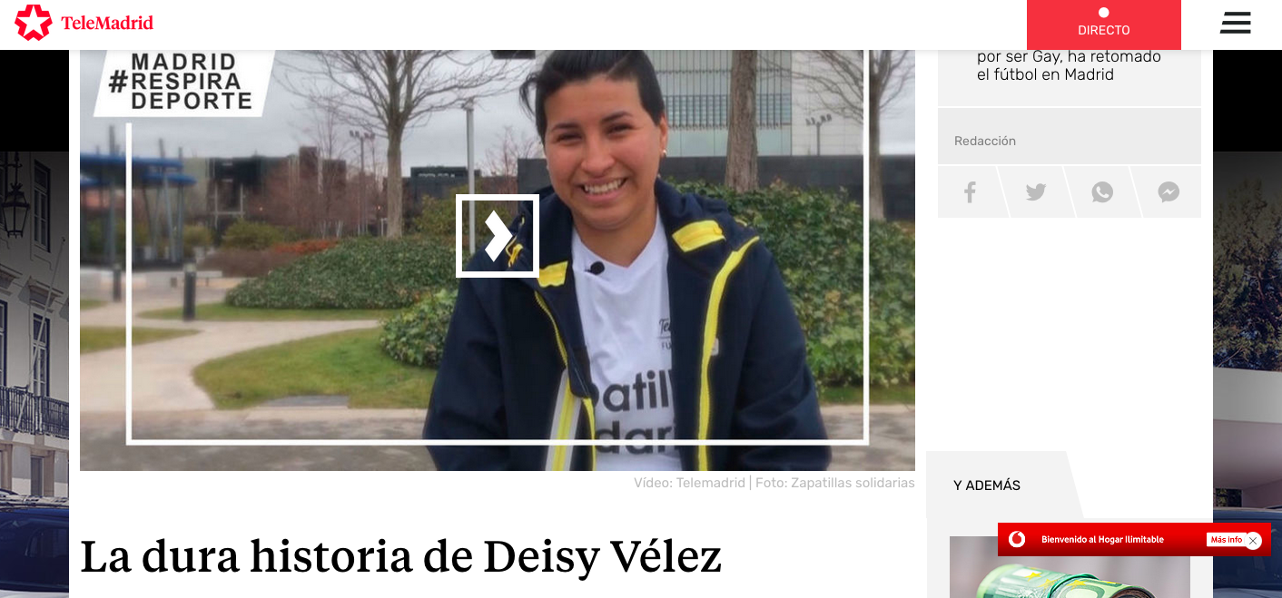 Telemadrid ha querido resaltar la historia de Deisy Vélez, una futbolista colombiana que tuvo que venir a España. Es usuaria del programa Zapatillas Solidarias y en este reportaje puedes conocer su historia.